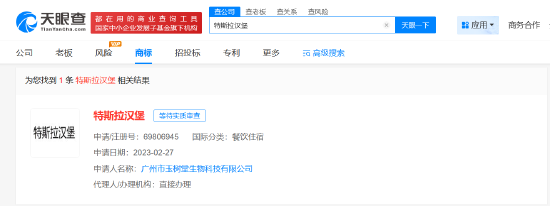据天眼查显示,“特斯拉餐厅”已被申请注册为商标,申请人为文某,国际分类为餐饮住宿、广告销售,不过,上述商标均已被驳回,处于无效状态。此外,“特斯拉汉堡”“特斯拉咖啡”等也已被申请注册为商标,上述商标也已被全部驳回。值得注意的是,已有餐厅用“特斯拉”命名,包括通州区兴东特斯拉茶餐厅、东坡区麦特斯拉主题餐厅。