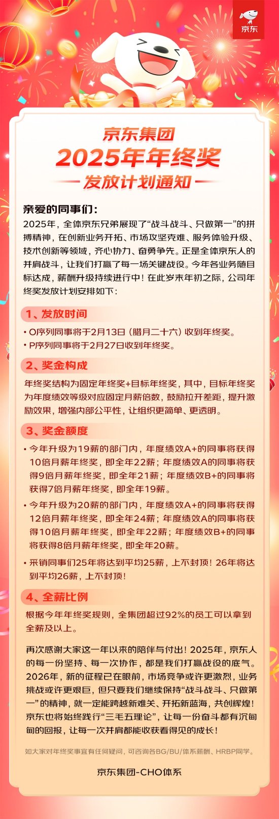 京东:2025年终奖投入同比涨幅超70%,采销平均25薪