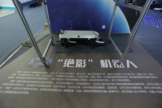 “绝影”机器人是杭州云深处科技有限公司研发的电驱型四足机器人,先后攻克了高功率密度电机、精密减速器、仿生机构、实时系统与总线等关键技术,突破了稳准快的运动控制、复杂未知环境地图构建、以及自主定位与导航等核心技术,可实现快速行走、跑跳、爬坡、爬楼梯、倒地起立等运动功能,可实现室内外环境的自主导航与实时规划等智能感知功能,可实现负重运输、安防巡检、目标侦察等作业任务。“绝影”的动作自然柔顺,反应快速准确,面对复杂环境表现出很强的适应力。